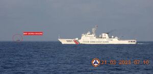 في السادس من أغسطس 2023، أطلقت سفن خفر السواحل الصينية مدفع مياه على سفينة تابعة لخفر السواحل الفلپينية تعيد إمداد مشاة بحريتها المتمركزة في ضحضاح توماس الثاني.[11]