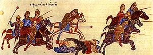 The annihilation of Khazaria was undertaken against the background of the Rus'-Byzantine alliance, concluded in the wake of Igor's Byzantine campaign in 944.[34] Close military ties between the Rus' and Byzantium are illustrated by the fact, reported by John Skylitzes, that a Rus' detachment accompanied Byzantine Emperor Nikephoros Phokas in his victorious naval expedition to Crete.