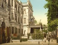 شارع إبراهيم باشا سابقاً (شارع الجمهورية حالياً)، أمام فندق شبرد السابق، أعظم فنادق الشرق حينذاك، وأكثر فندق في التاريخ نزل فيه أهم الشخصيات في العالم منذ منتصف القرن التاسع عشر وحتى عام 1952. تم تأسيسه في فترة 1840 بإسم "الفندق الإنجليزي"، ثم أُعيدت تسميته إلى "شبرد" عام 1860 على إسم مالكه صامويل شبرد.