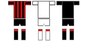 اختار النادي أقمصة مخططة عموديا بالأحمر و الأسود ألوانا رسمية