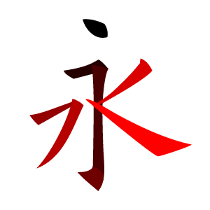 - the Xié 斜 is sometimes added to the 永's strokes. It's a concave Shù falling right, always ended by a Gōu).