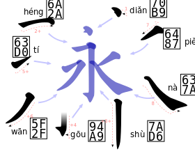 - ^ أ ب ت ث ج ح IRGN 1174: Summary Report of Strokes Ad Hoc Group, Strokes Ad Hoc Group, Dec 1, 2005, http://appsrv.cse.cuhk.edu.hk/~irg/n1101-1200.html; Documentation of CJK Strokes (Version 11.0), The Unicode Standard / the Unicode Consortium, June 1, 2018, https://www.unicode.org/versions/Unicode11.0.0/appF.pdf