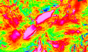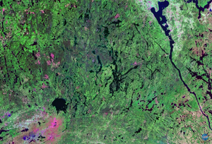 The western portion appears smoother in character while the eastern section is long and narrow. With an areal extent of 50 x 15 km, it reaches a magnitude of approximately 10,000 nanoteslas, making it one of the largest positive anomalies in North America.[1] The eastern section coincides with a small positive gravity anomaly, indicating the presence of dense rocks at depth.[2] The anomaly was discovered by a magnetic survey and a gravity survey.
