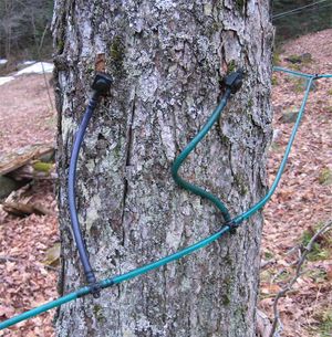 أمَّا في الوسائل الأكثر حداثة ، فيقوم المنتج بإدخال أنابيب معدنية في فتحات تحفر بالأشجار، فيتدفَّق السائل من خلال هذه الأنابيب التي تكون موصولة بالأوعية، والتي بدورها تكون موصلة بشبكة من الأنابيب التي تحمل السَّائل إلى بيت السُّكر.