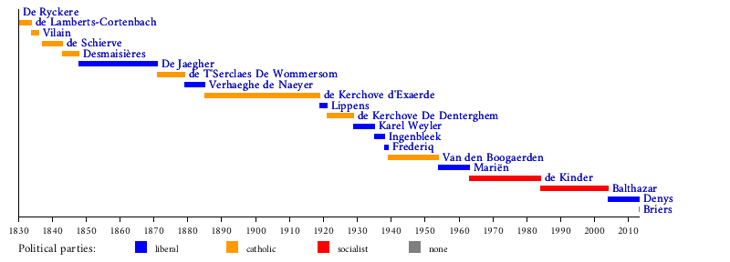 - 1921–1929: André de Kerchove de Denterghem (lib.)