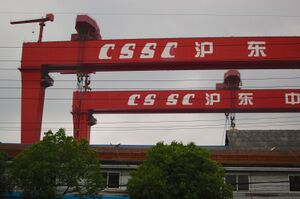 CSSC is one of the top 10 defence groups in China.[1] It consists of various shipyards, equipment manufacturers, research institutes and shipbuilding-related companies that build both civilian and military ships. It owns some of the most well known shipbuilders in China, such as Dalian Shipbuilding Industry Company, Jiangnan Shipyard, Hudong–Zhonghua Shipbuilding, Guangzhou Huangpu Shipbuilding[2] and Guangzhou Wenchong Shipyard.[3] Its subsidiary, China CSSC Holdings Limited (بورصة شانغهاي: 600150), is listed on the Shanghai Stock Exchange, and in turn owns other subsidiaries including Shanghai Waigaoqiao Shipbuilding.[4] As of 2022, CSSC builds around 41 percent of all ships.[5] All CSSC ships are built to military specifications, according to Chinese government doctrine.[5]