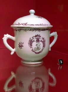 Porcelain sugar bowl made in China c. 1770–90, imported by the SOIC, City Museum of Gothenburg
