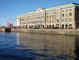 The East India House at Norra Hamngatan in Gothenburg, Sweden, built by the Swedish East India Company in 1750. The inscription on the frieze states: "This Building was erected in the year of 1750 by the East India Comp. The Gothenburg museum remodeled it for its collections in the year of 1895".