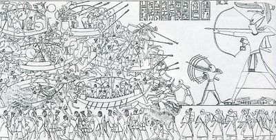 بدأت هجمات شعوب البحر على مصر منذ عهد الفرعون «مرنپتاح» (1236-1223ق.م)، الذي واجه تحالفاً ضم شعوب البحر مع الليبيين، إلا أن «مرنبتاح» استطاع صدَّهم، وهَزَمَهم وقتل وأسر الكثير منهم.