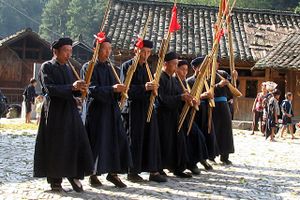 The term "Miao" gained official status in 1949 as a minzu (ethnic group) encompassing a group of linguistically-related ethnic minorities in Southwest China. This was part of a larger effort to identify and classify minority groups to clarify their role in the national government, including establishing autonomous administrative divisions and allocating the seats for representatives in provincial and national government.[2]