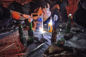 Trebuchet erected by rioters in Hrusehvskoho Street, Kiev