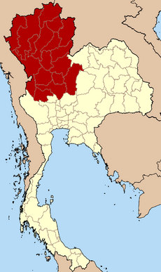 Map of Thailand highlighting the provinces of the northern region in the six-region system