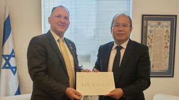 وأشار شياو إلى أنه تحت التوجيه الاستراتيجي لزعماء البلدين، تمتعت الصين وإسرائيل بتطور سليم ومستقر في العلاقات الثنائية منذ إقامة العلاقات الدبلوماسية قبل أكثر من 30 عامًا، وتم تحقيق نتائج مهمة من خلال التبادلات الودية والتعاون. تتميز الصداقة بين الصين وإسرائيل بأساس متين ونقاط قوة تكميلية في التعاون المربح للجانبين. تتميز علاقتنا الثنائية بأبعاد مختلفة ومرونة كافية وآفاق واسعة. طالما أن الجانبين يعززان الثقة ويعملان معًا وينظران إلى العلاقات الثنائية ويطورانها من منظور استراتيجي وطويل الأمد، فمن المؤكد أن مستقبلًا أكثر إشراقًا للعلاقات الصينية الإسرائيلية. إنه يتطلع إلى الحفاظ على التواصل الوثيق وإجراء مناقشات صريحة مع الأصدقاء في جميع أنحاء المجتمع الإسرائيلي، من أجل زيادة الثقة المتبادلة وتعزيز التعاون المشترك. معًا، سيحتضن الجانبان النمو المطرد والمستدام للعلاقات الصينية الإسرائيلية التي تحقق تقدمًا جديدًا باستمرار.