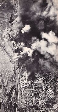 The Schweinfurt–Regensburg mission caused an immediate 34% loss of production[12] and all plants but the largest were devastated by fire. Efforts to disperse the surviving machinery began immediately and the Luftwaffe deployed large numbers of interceptors along the corridor to Schweinfurt.[13] Bombing also included the Second Raid on Schweinfurt on 14 October 1943 ("called Black Thursday because of the enormous loss of aircraft (60) and lives (600+)")[مطلوب توضيح] and Big Week in February 1944.