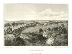 Schweinfurt's east side with vineyards. Steel engraving from 1847