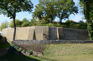 The (inner) city fortification of the new city was built and first documented in 1258, it is still largely preserved on Marienbach today. A document from 1282 signed by Rudolf I of Habsburg states that Schweinfurt was a free city within the Holy Roman Empire.[7] By pledge 1309 Schweinfurt came to the House of Henneberg, who maintained from 1310 to 1427 a Reichsburg (castle of the empire) in the old Schweinfurt city district Zürch.