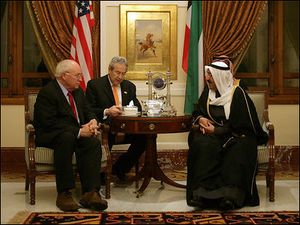نائب الرئيس الأمريكي ديك تشيني يقابل رئيس الوزراء الشيخ صباح الأحمد الجابر الصباح ليقدم تعازيه في وفاة الأمير، عام 2006.