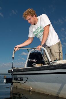Secchi depth is the depth at which a disk is no longer visible to the human eye. This measurement was created in 1865 and represents one of the oldest oceanographic methods.[23] [24] To measure Secchi depth, a white or black-and-white disk is mounted on a pole or line and lowered slowly down in the water. The depth at which the disk is no longer visible is taken as a measure of the transparency of the water.[25] [26] Secchi depth is most useful as a measure of transparency or underwater visibility.