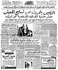 - ^ "أخطر صفقة سلاح في تاريخ مصر - عبد الناصر يعلن نبأ صفقة الأسلحة التشيكية من محطة إذاعة أمريكية - تهـديد أمريكي: الصفـقـة ســتؤدي إلي اندلاع سـباق تسلح في المنطقـة". صحيفة الأهرام. 2002-07-15.