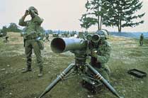 صاروخ صغير مقذوف يحمله الجنود، وهو مضاد للمركبات المصفحة. لدى البازوكا قوة اختراق مثل دبابة صغيرة. انظر: البازوكا. وتستعمل الجيوش صواريخ أكبر لتفجير القنابل بعيدًا خلف خطوط الأعداء، وكذلك لإسقاط طائرات العدو. وتحمل الطائرات المقاتلة صواريخ موجهة للهجوم على الطائرات الأخرى والأهداف الأرضية. وتستعمل السفن البحرية الصواريخ الموجهة للهجوم على السفن الأخرى، والأهداف الأرضية والطائرات.