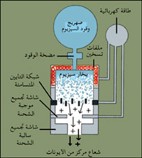 صاروخ أيوني وهو نوع من الصواريخ الكهربائية. تحول ملفات التسخين الوقود مثل السيزيوم إلى بخار. تغير شبكة تأيين متسامتة من البلاتين الساخن أو التنجستن البخار إلى سيل من الجسيمات المشحونة كهربائيًا تسمى الأيونات.