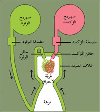 صاروخ الوقود الدافع السائل يحمل الوقود والمؤكسد كلا في خزان منفصل. يدور الوقود خلال غلاف تبريد المحرك قبل دخوله غرفة الاحتراق. هذه الدورة ترفع درجة حرارة الوقود للاحتراق وتساعد على تبريد الصاروخ.