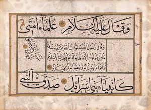 (help) - ^ M. Uğur Derman (2004). Masterpieces of Ottoman Calligraphy from the Sakıp Sabancı Museum. İstanbul: Sabancı Üniversitesi. pp. 82–83. ISBN 978-975-8362-45-5.