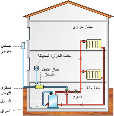- الضبط التنبئي :predictive regulation أو تحكم التغذية الأمامية، ويسمح بحذف آثار الاضطراب الرئيسي قبل التركيز على المتحول المراد ضبطه.