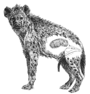 Cape spotted hyena populations are even smaller than those of local brown hyenas, due to past persecution. Transvaal's spotted hyenas are not protected, though they are not bountied. Natal's spotted hyenas have been increasing in number within all game preserves and nature reserves, where they are protected.[6] |