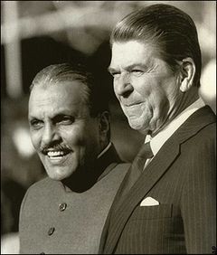في 1977 وبعد الإنقلاب الأبيض الذي قام به محمد ضياء الحق، تبنى نظامه سمتان رئيسيتان هما: الأسلمة والعسكرة. وقد ظهر كلاهما في رده على الغزو السوفييتي لأفغانستان. ووقدمت باكستان قدمت الدعم المادي والفني والمالي للمجاهدين الأفغان.