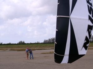 A quad-line traction kite, commonly used as a power source for kite surfing