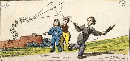 Boys flying a kite in 1828 Germany, by Johann Michael Voltz.
