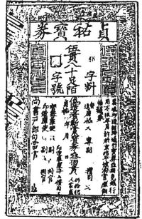 Copperplate of 1215–1216 5000 cash paper money with ten bronze movable types