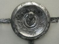 ![]() Detail from the Ahenobarbus monument showing (extreme right) a cavalryman standing in front of his horse. The cavalryman is wearing what appears to be a Boeotian-style helmet (as evidenced by all-round neck-guard), chain mail armour, mantle and dagger. He appears to have no shield. متحف اللوڤر, Paris |