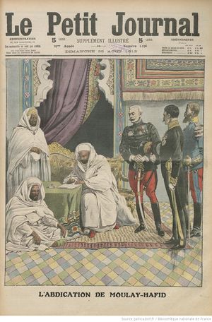 وقع السُلطان عبد الحفيظ فِي 30 مارس 1912 معاهدة فاس التي تنازل بموجبها عَن سيادة المَغْرِب لفرنسا، جاعلا المَغْرِب تحت الحماية. وبموجب اتفاقية بَيْنَ فرنسا وإسبانيا فِي نوفمبر مِن العام نفسه حصلت إسبانيا عَلَى محمية فِي شَمَال المَغْرِب تضم الريف (فِي الشمال) وإفني (على السَّاحل الأطلسي فِي الجنوب الغربي)، وكذلك منطقة طرفاية (جنوب نهر درعة).[55] فِي المحمية الإسبانيَّة، ظل السُلطان ذو سيادة اسمية وكَانَ يمثلهُ فِي سيدي إفني نائب للملك تحت سيطرة المندوب السامي الإسباني. وقد تم تقسيم المَغْرِب إِلَى 3 مناطق: