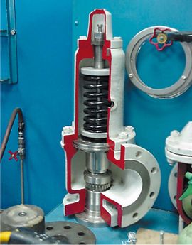 قد يكون من الأنسب في بعض الحالات استخدام صمامات تحرير الضغط للحماية من موجات الضغط العالية عوضاً عن استخدام خزانات حمـاية أو خزانات الضغط. ويحتوي سكر تحرير الضغط عموماً على فتحة مغلقة بوساطة مكبس يرتكز على نابض أو بوساطة بوابة مثقلة بوزن خارجي. فإذا زاد ضغط السائل الجاري في الأنبوب عن حدٍ مسبق التعيين (وهو الضغط الأعظمي المسموح للأنبوب تحمله مع هامش أمان مناسب)؛ يتحرك عند ذلك المكبس أو البوابة فتنكشف الفتحة، ويخرج منها السائل، ويخف بذلك الضغط. وبعد زوال الضغط المرتفع يعود المكبس أو البوابة إلى وضعهما الأصلي بفعل النابض أو الثقل الخارجي (الشكل 5).