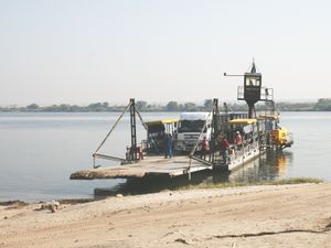واحدة من عبارتي طوف بونتون تعبران نهر زمبزي عند كازنگولو Kazungula