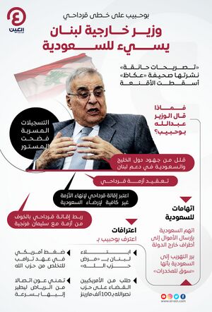 في 2 نوفمبر 2021 اشعلت تسجيلات مسربة لوزير الخارجية اللبناني، عبدالله بوحبيب،الأزمة بين بلاده ودول الخليج بعد إساءة زميله جورج قرداحي.
