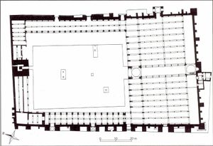 واحد هو نظام البناء. انها احتفظت الطريقة التقليدية للانتقال من المربع إلى القبة بمنطقة انتقالية مثمنة. ولكن سلسلة من ثمانية الأقواس متقاطعة بينها أضيفت فوق المثمن. في الأصل هذة الأقواس هي بمثابة أضلاع هيكلية هدفها توزيع ضغط القبة إلى عدد أكير من النقاط .هذا النظام في وقت لاحق من الزمن أصبحت من سمات العمارة القوطية . تجربة المسلمين هي واحدة من أوائل التجارب المعمارية التي يمكن العثور عليها في غرب البحر الأبيض المتوسط.
