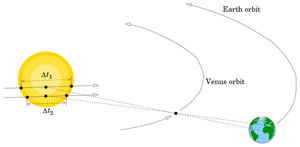 23. ^ أ ب Prof. Richard Pogge. "Lecture 26:How far to the sun? The Venus Transits of 1761 & 1769". Retrieved 25 September 2006.