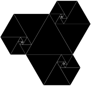 In the spiral, each triangle shares a side with two others giving a visual proof that the Padovan sequence also satisfies the recurrence relation