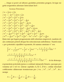 ياكوب برنولي: Summae Potestatum، سنة 1713