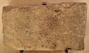 Other significant locations where she was introduced by Phoenician sailors and colonists were Cythera, Malta, and Eryx in Sicily from which she became known to the Romans as Venus Erycina. Three inscriptions from the Pyrgi Tablets dating to about 500 BC found near Caere in Etruria mentions the construction of a shrine to Astarte in the temple of the local goddess Uni-Astre (𐌔𐌄𐌓𐌕𐌔𐌀𐌋𐌀𐌉𐌍𐌖).[17][18] At Carthage Astarte was worshipped alongside the goddess Tanit, and frequently appeared as a theophoric element in personal names.[19]