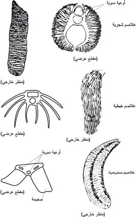 - غلاصم خيطية filibranches كما في جراد البحر،