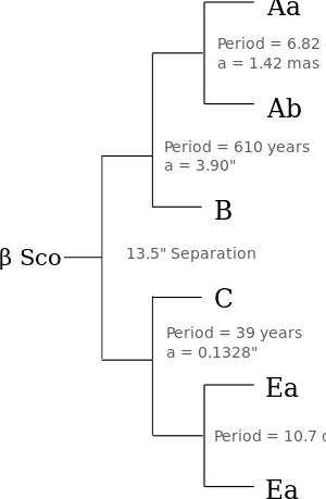 Fixed typo "hierarchy" of orbits in the Beta Scorpii system.[8]