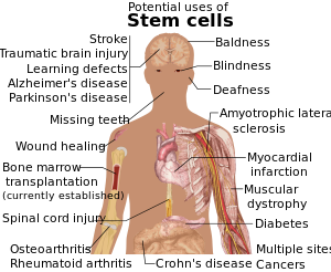 أجريت الأبحاث لمعرفة ما إذا يمكن استخدام الخلايا الجذعية لمعالجة تنكس الدماغ، كما هو الحال في مرض باركنسون، التصلب الجانبي الضموري والزهايمر.[10][11][12] وكانت هناك دراسات أولية تتعلق بالتصلب المتعدد .[13][14]