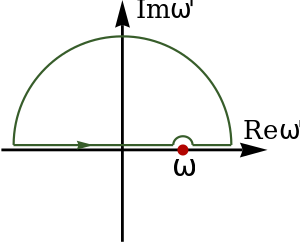 حيث هى القابلية الكهربية للمادة. ويمكن تفسير هذه القابلية مثل تحول فوريير للإستقطاب المتعلق-بالزمن في المادة بعد حدوث ميل صغير للنبضات الكهربية, وبمعنى أخر إستجابة الإستقطاب للدفعات.