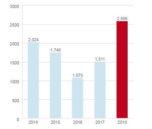 - زيادة في عقود المشتريات العامة فوق العتبة الممنوحة من خلال المنافسة المفتوحة.