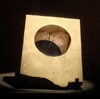 Eudoxus of Cnidus lived and practiced astronomy in the first half of the fourth century BC. His works are lost and so information about him comes from secondary references in ancient texts. There is a group of fragments about astronomy in the fourth century BC known as the Eudoxus Papyrus, but it contains little relevant informations about the views of Eudoxus himself.[25] According to Hipparchus in his commentary on Aratus, Eudoxus is thought to have written include one called Mirror and another called Phaenomena, though an Oktaeteris is pseudonymously attributed to him.[26] Another work, On Speeds, endeavored to understand the then-unpredictable motions of the planets.[27] He began his work in Athens and Egypt, he went on to found a school in Cyzicus where he gained his reputation. His pupils include Menaechmus, credited as the inventor of the notion of conic sections, and Polemarchus, whose own pupil Callippus offered well-received modifications of the Eudoxan theory of homocentric spheres. He also contributed to the calendar and the parapegma literature.[26]
