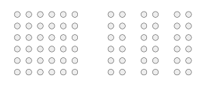 The law of proximity states that when an individual perceives an assortment of objects, they perceive objects that are close to each other as forming a group. For example, in the figure illustrating the law of proximity, there are 72 circles, but we perceive the collection of circles in groups. Specifically, we perceive that there is a group of 36 circles on the left side of the image and three groups of 12 circles on the right side of the image. This law is often used in advertising logos to emphasize which aspects of events are associated.[36][37]